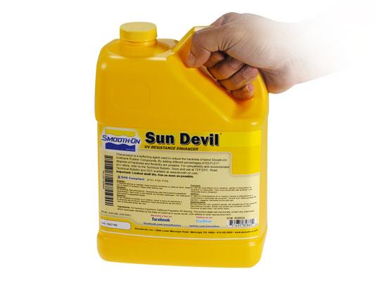 Eine dauerhafte UV-Stabilität ist bei flüssigen Urethanprodukten nicht möglich. Letztlich besteht die einzige Möglichkeit darin, die abbauenden Auswirkungen (Farbveränderung und Oberflächenabbau) von UV-Licht auf diese Materialien zu verzögern. Sun Devil™ ist ein flüssiges Einkomponenten-Additiv, das die Farbveränderung und den physikalischen Abbau durch UV-Bestrahlung bei vielen Smooth-On Flüssigurethanprodukten verlangsamt. Sun Devil™ wird dem Urethan-Gummi, -Kunststoff oder -Schaumstoffsystem nach Gewicht zugegeben (Grammwaage erforderlich). Die Ergebnisse sind unterschiedlich und hängen von der Intensität und Dauer der UV-Bestrahlung des ausgehärteten Materials ab.