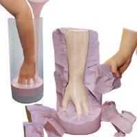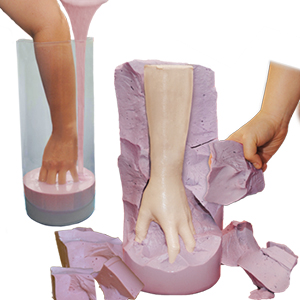 Alginat ist für eine Abformung des Körpers, zu verwenden. Alginat hat aber nicht ausreichend, Formbeständigkeit und wird daher durch eine harte (Außen-) Form gestützt, in der Regel aus Gips, als dieser schnell und einfach in der Verarbeitung ist. Wenn Sie mehrere Castings von einer Form machen wollen, ist es am besten für die Abformung ein sichere Haut Silikon zu verwenden.