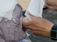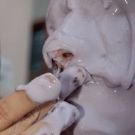 Nachdem das Alginat Puder gut mit Wasser verrührt ist, habben Sie einige Minuten Zeit bevor das Alginat zu gelieren anfängt. Die Verarbeitungszeit hängt unter anderem von der Wassertemperatur und dem Mischverhältnis ab. Unsere FormX Lifecasting Alginate sind, im Gegensatz zu Dental-Alginat, speziell konzipiert für Körperabformung und habben darum auch eine längere Verarbeitungszeit. Mischen Sie nicht zu viel Masse auf einmal, lassen Sie Ihr Modell sich entspannen und achten Sie beim anbringen des Alginates darauf, dass die Nasenlöcher immer frei bleiben.