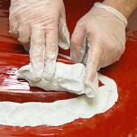 Gipsbandagen werden verwendet, um eine harte Stützform über eine flexible Gussform (Alginat oder Silikon)zu erstellen (Body Double).