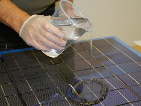 Maximale Haftung mit Solaris® Bonding Primer - Solaris®-Silikon haftet unter den meisten Bedingungen auf sauberen Solarglas-Substraten. Die geringste Oberflächenkontamination oder Unvollkommenheiten können dazu führen, dass sich das Silikon vom Glas löst. Wenn dies geschieht, ist das Ergebnis ein kostspieliger Ausfall des Solarmoduls. Der Solaris® Bonding Primer ist der einzige Weg, um sicherzustellen, dass sich das Silikon mit dem Glassubstrat verbindet.