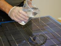 Solaris® wird nach Volumen von 1A: 1B gemischt (keine Waage erforderlich). Es besitzt eine niedrige Viskosität und entlüftet sich gut. Um die Entlüftung zu erleichtern, beträgt die Topfzeit extra 240 Minuten. Der Kautschuk härtet in 24 Stunden bei Raumtemperatur optisch klar aus. Sonnenkollektoren können nach 24 Stunden in Betrieb genommen werden.