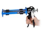 Dispensing gun for Body Double™, Dragon Skin™, Mold Star™, and Ecoflex™ 400 ml and SuperInstant™ 200ml cartridges through a static mixing tube. Squeeze the handles of the manual gun.