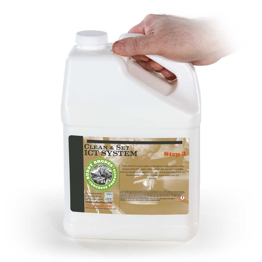 ICT Clean and Set ist der letzte Schritt im ICT-Versiegelungssystem. Es beschleunigt die Aushärtung von ICTsealer-Produkten und ist auch als Reiniger für mit ICT versiegelten Beton wirksam.