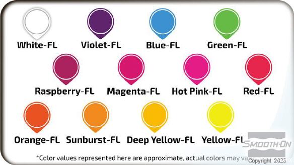 Die Maker Pro Paint™ Fluorescent Color Collection ist für Anwendungen erhältlich, die ein "neon" -Aussehen bei weißem Licht und/oder "Leuchteffekte" bei UV-Blacklight erfordern. Es gibt 12 Maker Pro Paint™ Fluorescent Colors und 2 verschiedene klare Top-Beschichtungen für Blacklight (Glänzend & Matt).