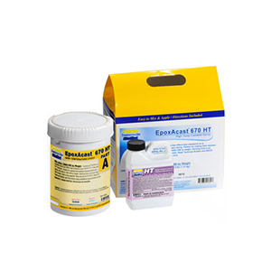 EpoxAcast® 670 HT (früher 20-136) ist eine Epoxid-Vergussmasse, die eine hohe Hitzebeständigkeit von bis zu 177 ° C bietet, wenn ein Nachhärtungsplan verwendet wird. EpoxAcast® 670 HT zeichnet sich durch eine relativ niedrige Viskosität aus, die einen minimalen Blaseneinschluss gewährleistet. EpoxAcast® 670 HT bietet darüber hinaus eine extra lange Arbeitszeit von 3 Stunden.