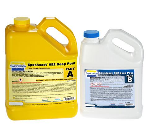 EpoxAcast™ 692 Deep Pour is an UV resistant clear casting epoxy resins suitable for a variety of industrial and art related projects requiring a rigid, clear finished casting. EpoxAcast™ 692 features a very low viscosity for easy mixing and minimal bubble entrapment. Castings cure with negligible shrinkage and are very hard and strong. Resin can be colored with UVO™ or IGNITE™ colorants. Cast Magic™ and Glow Worm™ powders can also be added to create amazing casting effects.