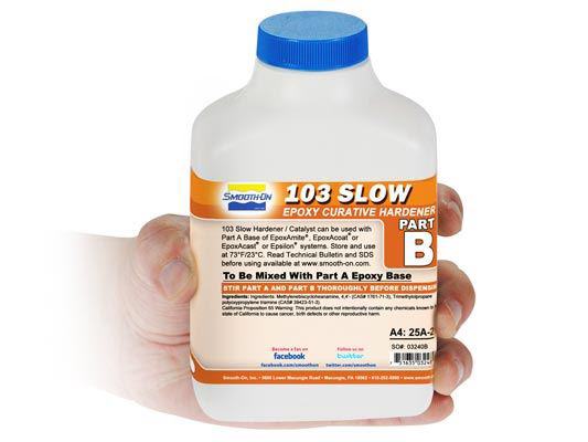 103 SLOW Hardener - Trial Size PART B ONLY When used with EpoxAcast 650: Mix ratio: 100A:14B by weight Pot Life: 3.5 hours - Cure Time: 24 hours Net Weight : 0.5 Lbs.