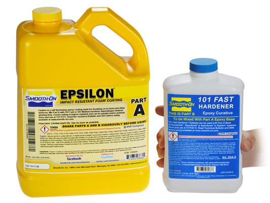 EPSILON ist farbneutral und das ausgehärtete Material wird leicht geschliffen, grundiert und lackiert. EPSILON eignet sich hervorragend als schützende, schlagfeste Beschichtung für EPS oder Polyurethanschaum. Es kann auch auf Kunststoffe, Beton, Holz und Textilien angewendet werden.