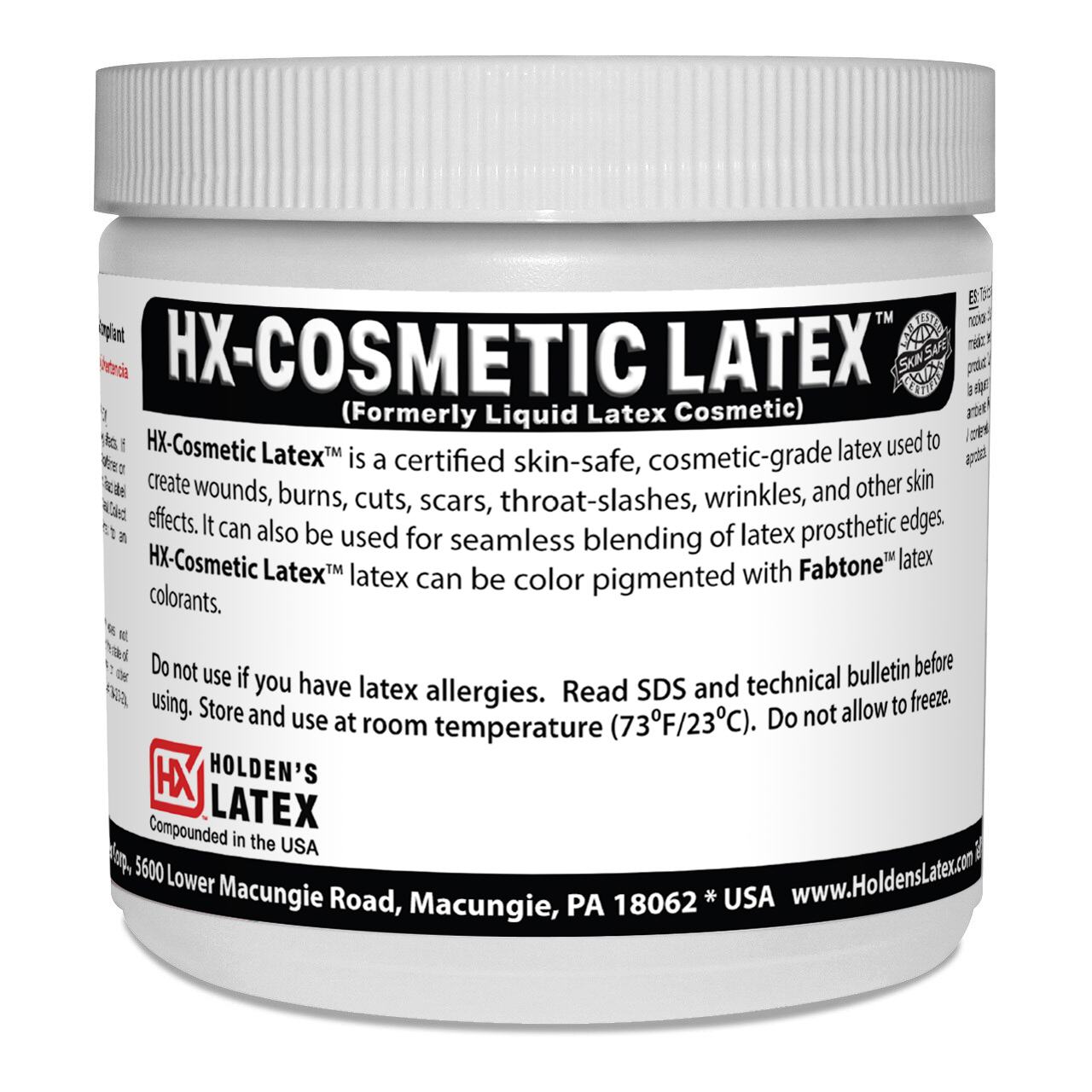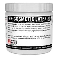 HX-COSMETIC LATEX™ ist ein hochwertiges flüssiges Naturlatexprodukt, das zur Herstellung von Hautunreinheiten, Verbrennungen, Schnitten, Wunden, Falten und ähnlichen Effekten verwendet werden kann. Es wird auch verwendet, um die Ränder von Prothesen mit der anliegenden Haut zu verschmelzen und so eine nahtlose Verbindung zu schaffen.