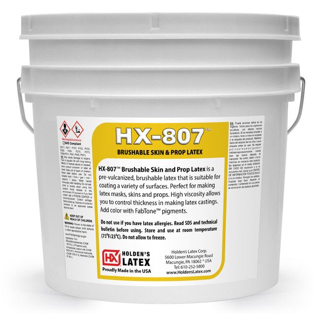 HX-807™ Brushable Skin & Prop Latex ist ein vorvulkanisierter, streichbarer Latex, der sich zum Beschichten einer Vielzahl von Oberflächen eignet. Perfekt für die Herstellung von Latexmasken, -häuten und -requisiten. Die hohe Viskosität ermöglicht die Kontrolle der Dicke bei der Herstellung von Latexabgüssen. Fügen Sie Farbe mit Fabtone™-Pigmenten hinzu.