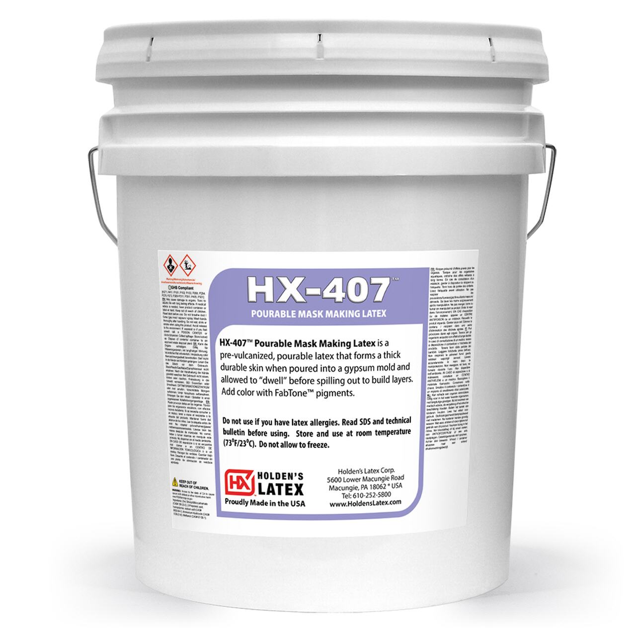 HX-407™ Gießbarer Maskenbau-Latex ist ein vorvulkanisierter, gießbarer Latex, der eine dicke, haltbare Haut bildet, wenn er in eine Gipsform gegossen wird und dort "verweilen" kann, bevor er ausläuft, um Schichten aufzubauen. Farbe hinzufügen mit Fabtone™-Pigmenten