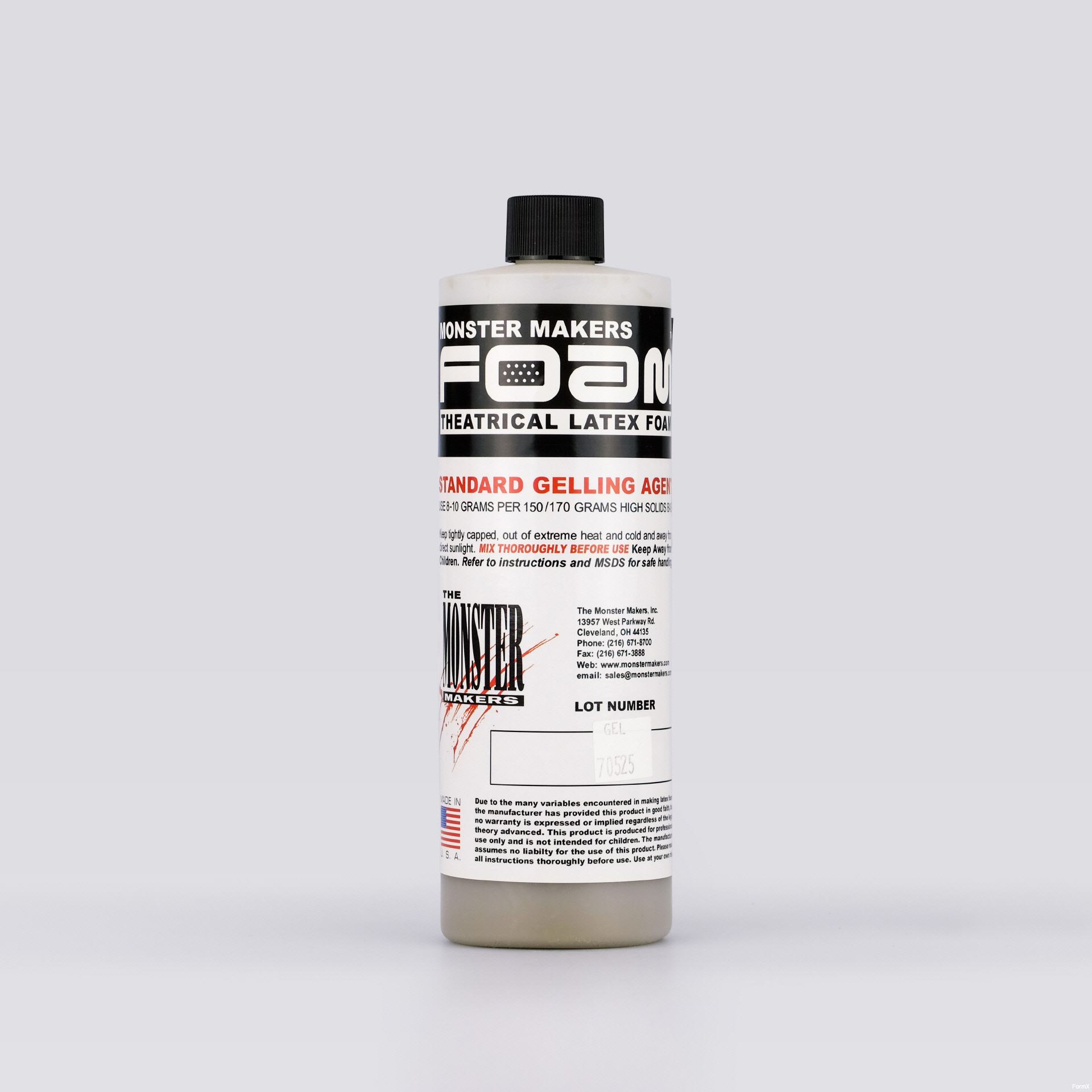 Dies ist unser Standard-Geliermittel, das jedem Monster Makers Schaumlatex-Kit beiliegt. Das Geliermittel wirkt wie ein verzögertes Gerinnungsmittel, das den flüssigen Schaum in eine halbfeste Masse verwandelt. Abhängig von einer Reihe von Faktoren, einschließlich der Menge an Ammoniak, die zum Zeitpunkt der Zugabe im Schaum vorhanden ist, beginnt das Geliermittel einen chemischen Übergang, der es dem Schaum ermöglicht, seinen Zustand zu ändern.