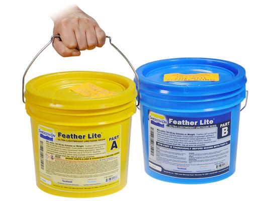 Mixing - Material is heavily filled and the filler will separate from the liquid during storage. When you first open containers, you will see powder on top that must be thoroughly pre-mixed with liquid on bottom. You MUST stir both Part A & Part B well before using - Pre-mix both parts in their original containers before dispensing. After dispensing equal amounts of Parts A and B into mixing container, mix thoroughly. Stir slowly and deliberately making sure that you scrape the sides and bottom of the mixing container several times. Be careful not to splash low viscosity material out of the container. Remember, Feather Lite™ sets up quickly. Do not delay between mixing and pouring.