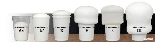 The same amount of liquid base components yields a larger volume when the foam is of lower density