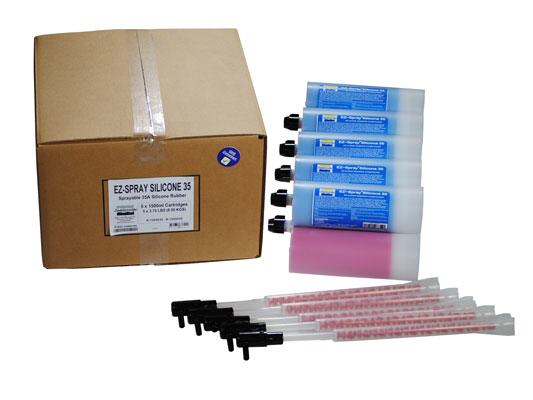 EZ-Spray silicone Rubber / 5 Cartridge unit + 5mixers / (750mlA+750mlB/cartridge), Set = 8,75kg. (Bitte beachten Sie, das Foto zeigt den älteren Satz von drei Patronen)