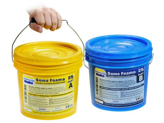 Soma Foama™ ist ein weicher, zweikomponentiger Platin-Silikonweichschaum, der vielseitig und einfach zu verwenden ist. Soma Foama™ 25 ist ein Schaumstoff mit höherer Dichte als das Original Soma Foama™ 15, der sich um das 2-3-fache seines ursprünglichen Volumens ausdehnt und eine gleichmäßige Zellstruktur von 25 lb./cu. ft. (400 kg/m⊃3;) entwickelt. Durch Zugabe von Silc-Pig™-Silikonfarbpigmenten lassen sich leuchtende Farben erzielen. Der ausgehärtete Schaum ist hoch hitzebeständig (bis zu 176 °C), wasserfest, UV-beständig und widersteht Oxidation und Abbau durch Ozon.