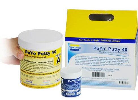 Poyo ® Putty ist ein Zwei-Komponenten-, Zinn- katalysiertes Knetsilikon, das angewendet werden kann direkt- "on-site" an fast jedem Modell. Es erfasst die feinsten Details und härtet aus innerhalb weniger Minuten. Poyo Putty ® wird verwendet, um Formen von wertvollen Antiquitäten und archäologischer Modelle zu erstellen und ür eine schnelle Abformung von Skulpturen, Prototypen, Kerzen, Bilderrahmen, Münzen. Sie können Wachs, Gips und eine Vielzahl von Harzen in Poyo Putty giessen.