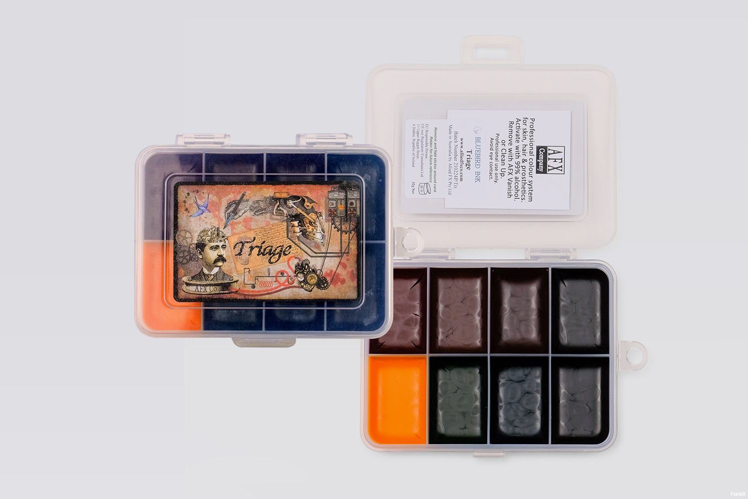 Die Bluebird Ink Paletten eignen sich perfekt zum Abdecken von Tätowierungen und zum Erzeugen von Effekten wie Narben und blauen Flecken, die alle auf Silikon und Latex verwendet werden können.