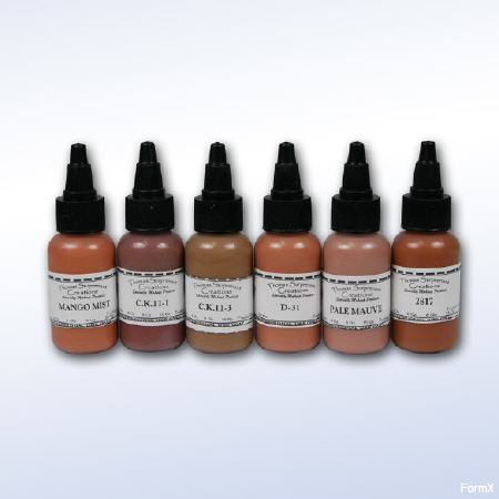 Thomas Surprenant's PAX paints are well sought after in the entertainment industry and have been used from everything from the Santa Claus movies to the Lord of the Rings Trilogy. This Acrylic adhesive-based paint system is durable and has a very high coverage. It can be used to paint prosthetic apliances or foam latex animatronic skins, paint bald caps or cover tatoos. Diluted with distilled water (50%) it can be airbrushed too.