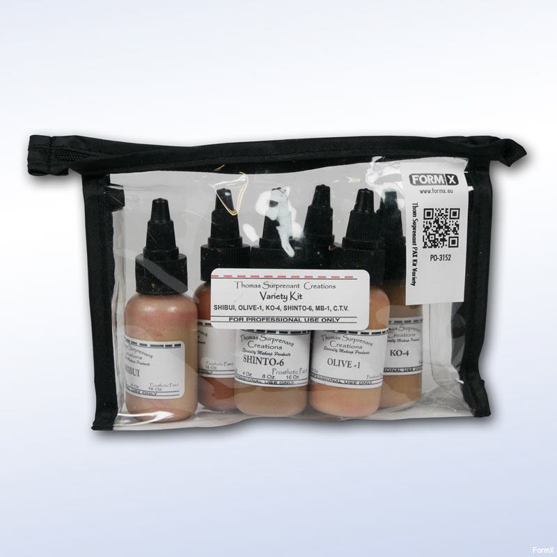 Thomas Surprenant's PAX paints are well sought after in the entertainment industry and have been used from everything from the Santa Claus movies to the Lord of the Rings Trilogy. This Acrylic adhesive-based paint system is durable and has a very high coverage. It can be used to paint prosthetic apliances or foam latex animatronic skins, paint bald caps or cover tatoos. Diluted with distilled water (50%) it can be airbrushed too. Remove with Beta Bond remover, Super Solve or Pros-Aide Remover.