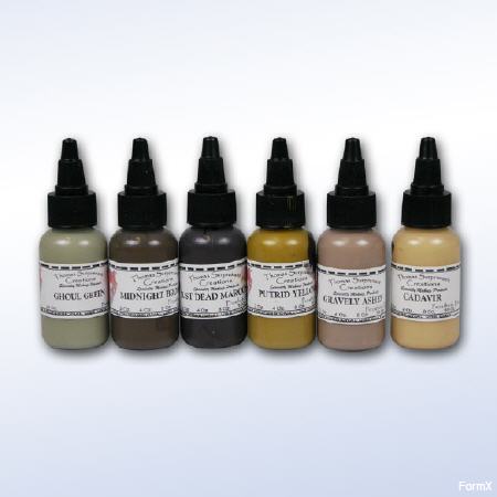 Thomas Surprenant's PAX paints are well sought after in the entertainment industry and have been used from everything from the Santa Claus movies to the Lord of the Rings Trilogy. This Acrylic adhesive-based paint system is durable and has a very high coverage. It can be used to paint prosthetic apliances or foam latex animatronic skins, paint bald caps or cover tatoos. Diluted with distilled water (50%) it can be airbrushed too.