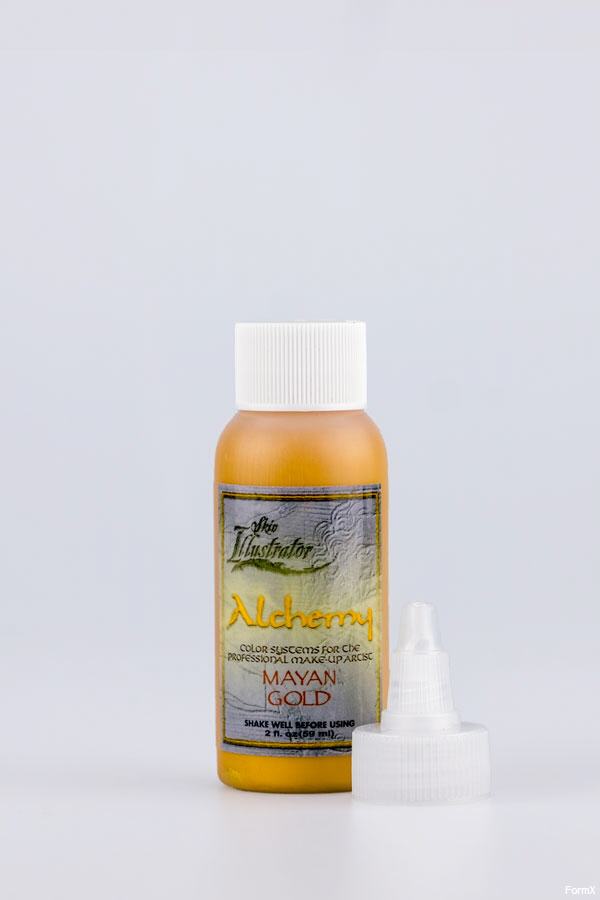 The Skin Illustrator Alchemy Palette is the fourth addition to the Skin Illustrator line. A first in a series of specialty colors, this palette of bright metallic colors was designed to simulate precious liquid metals. The colors are safe for use on the lips, skin, hair and around the eyes. The colors can be used with PAX, rubber mask grease, foam latex, gelatin, plastic and silicone appliances. The Alchemy palette and liquids are ideal for beauty, fantasy and special effects make-up.