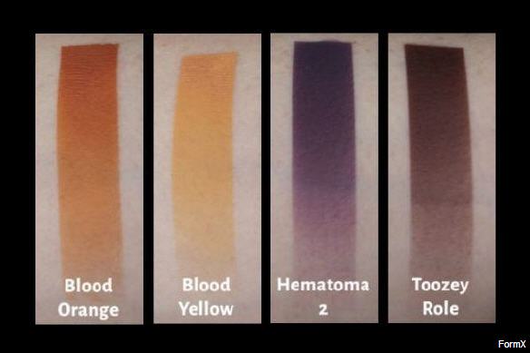 "I love mixing colors, and when something works consistently, that’s the end goal. Through my own mixing, or with input from great artists who share their knowledge, these are my go-to colors. Blood Orange and Blood Yellow are great corrector colors, for when you find an area of your makeup which has turned that annoying blue or purple tone, and it surprises you when you're close to being done. They brings life back to the skin in a hurry. When you have only time for one more color pass but you want to add five . . . Hematoma 2 is great for that close to the surface trauma look. Tootzey Role works for all those times when you need a tone that is Carmel brown and has a bit of candy Red pop." Mike Mekash