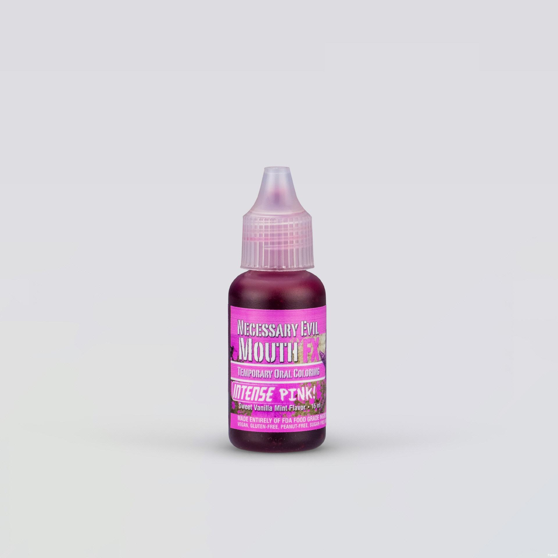 Mouth FX ist ein temporäres Mundfärbesystem, das entwickelt wurde, um das Innere des Mundes sicher und effektiv zu färben. Mouth FX enthält einen süßen Vanille-Minze-Geschmack, der ausschließlich aus Lebensmittelrecht und unbedenklichen Inhaltsstoffen hergestellt wird. Jjede Farbe ist vegan, glutenfrei, erdnussfrei, zuckerfrei und frei von Tierversuchen. Mouth FX ist in zehn verschiedenen Farben erhältlich - einzeln oder zusammen in zwei verschiedenen Kits (inkl. Tragetasche und Karabinerhaken). Kundenspezifische Kits sind ebenfalls erhältlich - bitte rufen Sie uns für weitere Informationen an. Mouth FX wurde von Dan Gilbert und Necessary Evil FX entwickelt.