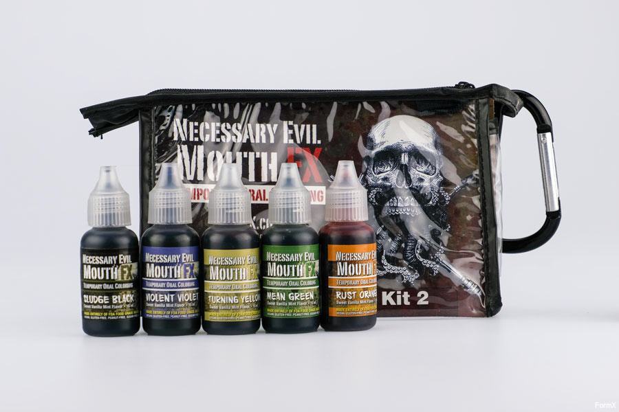 MouthFX Kit 2 contains: - Rust Orange, Sludge Black, Turning Yellow, Violent Violet and Mean Green