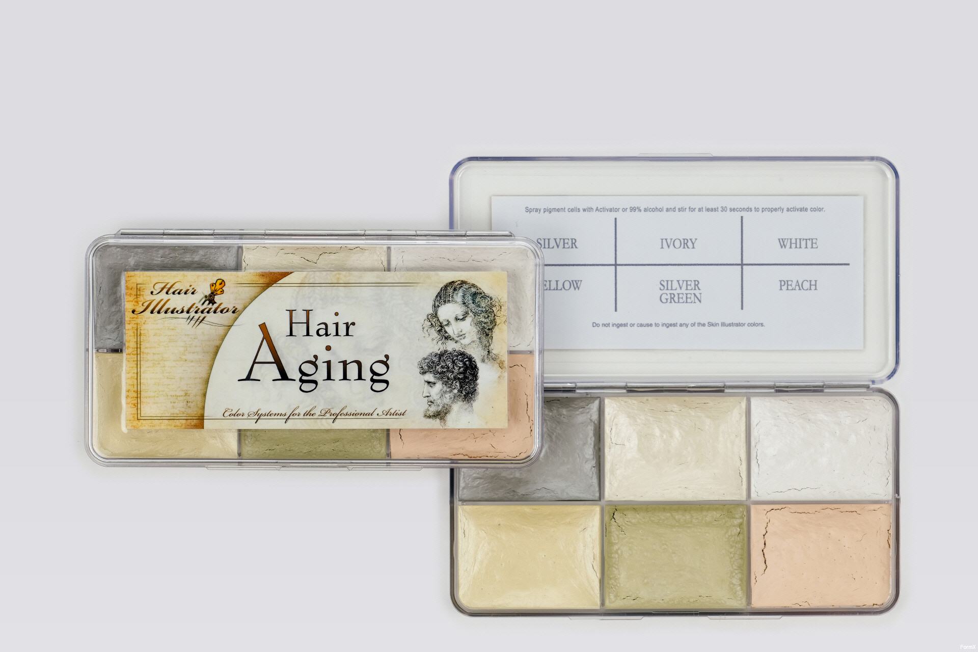 Altert jede beliebige Farbe der Haare leicht. Von ein paar Jahre, um ein paar Jahrzehnte mit dem Hair Aging Palette. Enthält die Farben: Silber, Elfenbein, Weiß, Gelb, Silber, Grün.