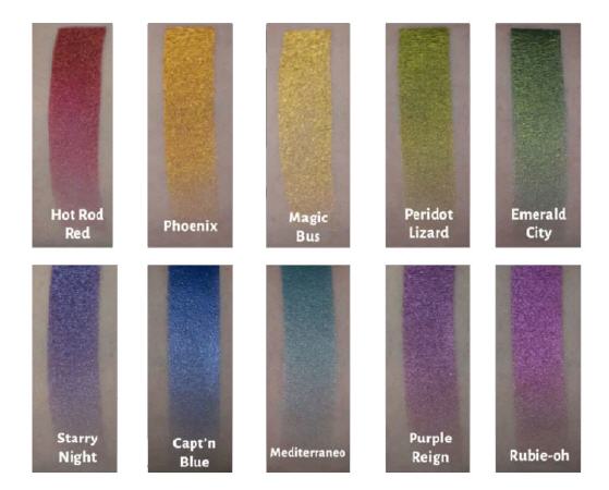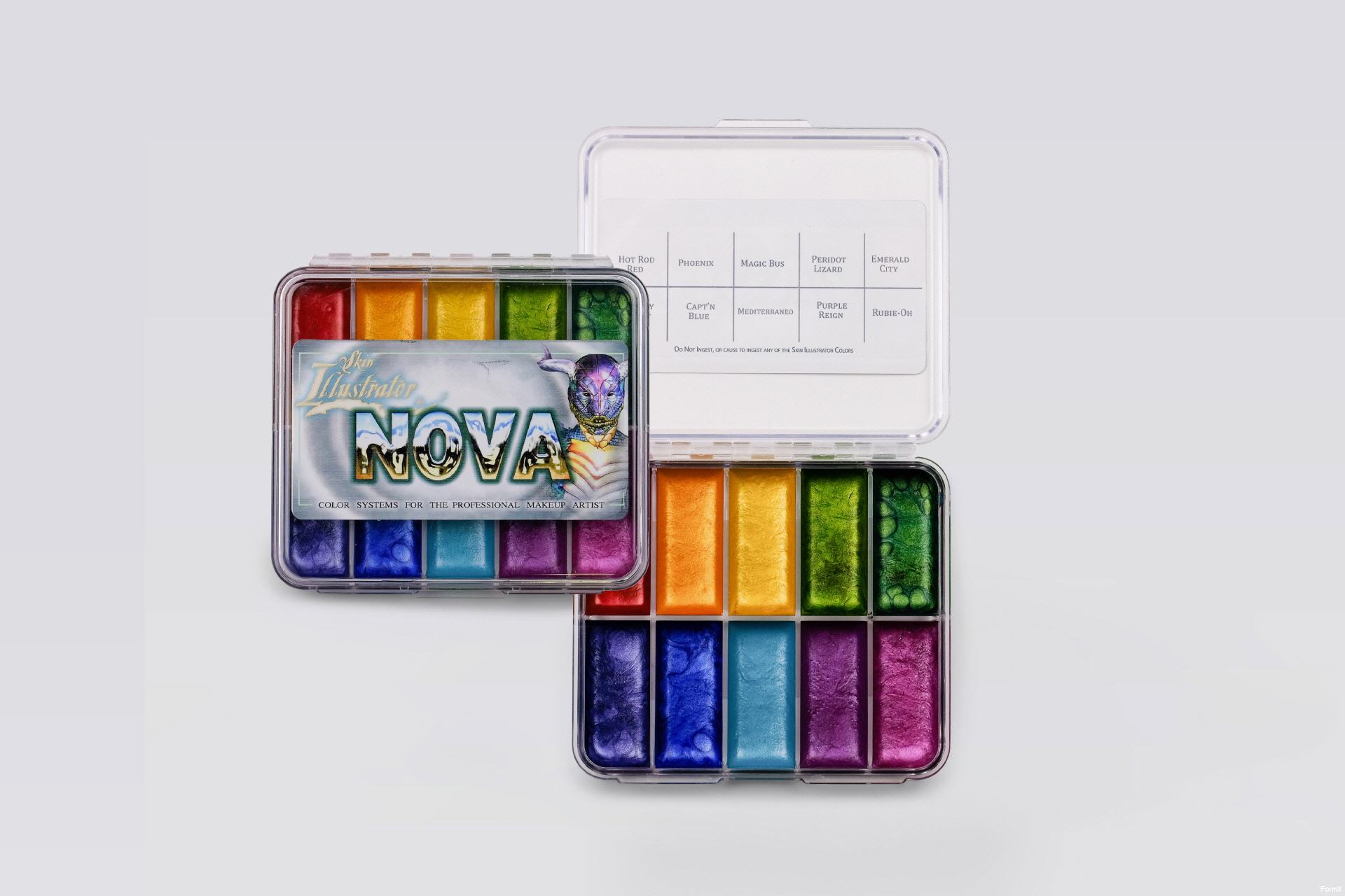 The Nova Palette is a collection designed around the rainbow color spectrum. Giving artists the ability to mix a wide range of unique bright metallic shades. Great for body paint, sci fi, fantasy and cosplay looks. Waterproof formula is perfect for underwater shoots for mermaids and more. Also available in a On Set size.