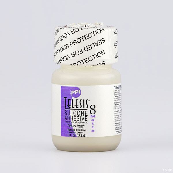 TELESIS MATTE LACE - The ideal adhesive for laying hair goods and lace pieces. The matting agents are mixed intrinsically during the manufacturing process which ensures a fluid consistency so the adhesive never gets hard or cracks - it dries matte and stays matte. Telesis 8 Matte Adhesive is pliable and will move with your actor's face and will not damage your lace hair goods.