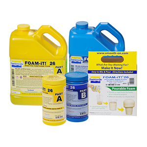 Smooth-On’s FOAM-iT!™ Series are two-component water blown rigid foams that are versatile and easy to use. FOAM-iT!™ products are available in 3lb., 4 lb., 5 lb., 8 lb., 10 lb.,15 lb. or 26 lb. per cubic foot densities. Parts A and B are measured and mixed in equal amounts by volume. The mixture is then poured into a mold or other form (apply release agent if necessary). The mixture will expand many times original volume (depending on which FOAM-iT!™ product you are using) and develop a uniform cell structure. FOAM-IT!™ 26 is tack-free in about 4 - 6.5 minutes, developing handling strength in 20 minutes and full cure in 2 hours. FOAM-iT!™ 26 can be cast in blocks as a machinable prototype modeling board. All FOAM-iT!™ products can be used as a straight casting material, backfill material for hollow castings (adds structural strength) or as an encapsulation material, etc. They can be color pigmented with SO-Strong™, UVO™ or IGNITE™ colorants and are used for a variety of art/ craft, industrial design and special effects applications.