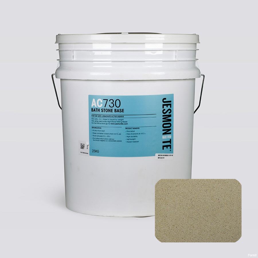 Jesmonite AC730 ist ein schnell aushärtender, acrylmodifizierter zementärer Verbundwerkstoff. Das System ist hauptsächlich für glasfaserverstärkte, leichte, von Hand laminierte dekorative Anwendungen konzipiert, kann jedoch auch für kleine dekorative Gussteile verwendet werden.