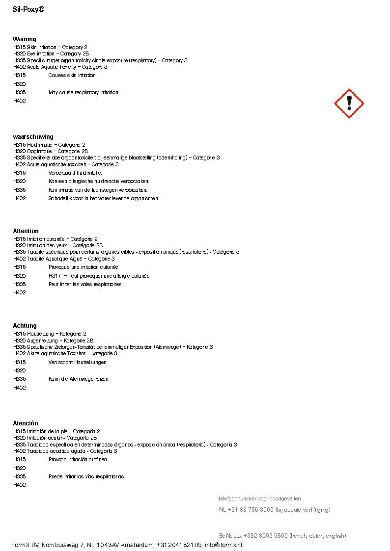 Sil-Poxy © ist ein einkomponentiger Klebstoff speziell für die Verklebung RTV Silikonkautschuk mit anderen Substraten zoals einige Kunststoffe (Urethan), Gips / Keramik, Textilien. Sil-Poxy © kan mit Zinn- katalysiertes oder Platin-Silikone verarbeiten werden und bietet eine starke, flexible Verbindung zwischen Silikon-Teile mit hoher Dehnung. Andere Anwendungen umfassen dieVerklebung von Silikone für Prothetik und animatronics.