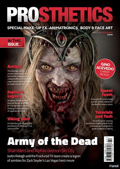 There’s an air of change about issue 22, not least because it’s our first bigger bumper one! We bring you exciting examples of conventional prosthetics; everything from wild werewolves to savage zombies, crazed creatures to animal-children. But we also look at how the future is unfolding, with tantalizing tutorials examining 3D modelling software, as well as the place of 3D printing in the manufacture of appliances, and how the two technologies can sit side-by-side with traditional techniques. Basically, where the past meets the present…literally in A Family Portrait – just one of the amazing articles on offer!