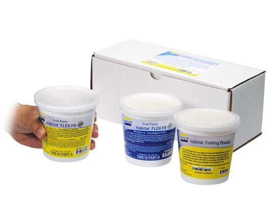 Free Form™ Habitat™ Flex FR Epoxy Putty ist eine mischbare und von Hand auf zu tragende Knetmasse, die als schwer entflammbar (E84, Klasse A) zertifiziert ist und zur Herstellung von halbstarren und extrem widerstandsfähigen Ausstellungselementen verwendet wird. Habitat™ Flex FR ist lösungsmittelfrei und enthält keine VOCs. Die Verarbeitungszeit beträgt 90 Minuten und die Verarbeitungszeit 24 Stunden bei einer Raumtemperatur von 23°C. Ausgehärtetes Epoxidharz hat eine gewisse Flexibilität mit ausgezeichneter Schlag- und Abriebfestigkeit.