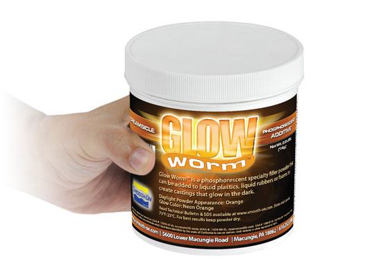 Glow Worm™ phosphoreszierende Pulver können flüssigen Kunststoffen, Gummis und Schäumen von Smooth-On zugesetzt werden, um Gussteile herzustellen, die im Dunkeln leuchten, nachdem sie mit Licht aufgeladen wurden.