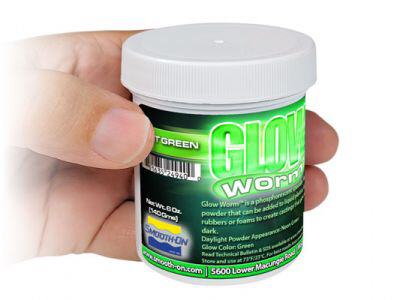 Glow Worm™ phosphoreszierende Pulver können flüssigen Kunststoffen, Gummis und Schäumen von Smooth-On zugesetzt werden, um Gussteile herzustellen, die im Dunkeln leuchten, nachdem sie mit Licht aufgeladen wurden.