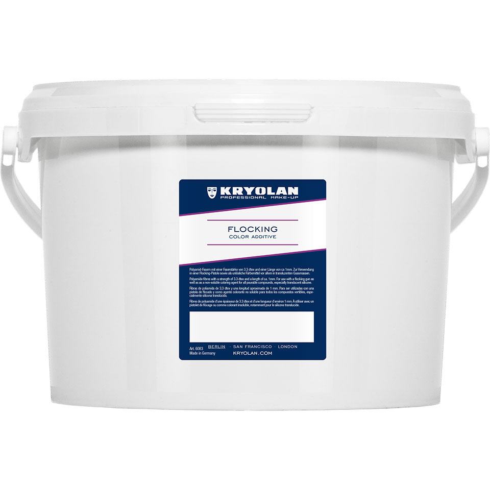 Flocking Farbzusatz ist ein sehr feinfasriger Farbzusatz aus Polyamidfasern zur Darstellung eines natürlichen Hautkolorits. Durch die Beimischung geringer Mengen in On-Skin Silicon, Gelatine oder anderer transparenter bzw. halbtransparenter (Dragon Skin, EcoFlex, Platsil Gel) Trägerstoffe kann eine feine Äderung der Haut simuliert werden.