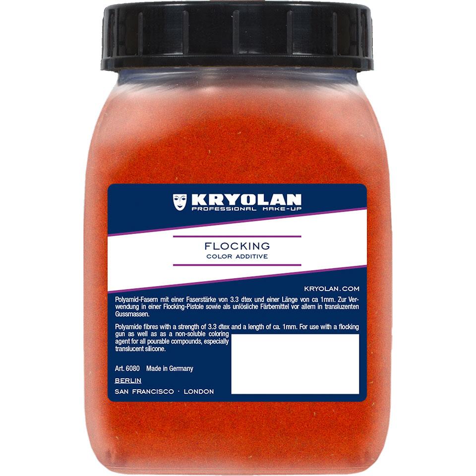 Flocking Farbzusatz ist ein sehr feinfasriger Farbzusatz aus Polyamidfasern zur Darstellung eines natürlichen Hautkolorits. Durch die Beimischung geringer Mengen in On-Skin Silicon, Gelatine oder anderer transparenter bzw. halbtransparenter (Dragon Skin, EcoFlex, Platsil Gel) Trägerstoffe kann eine feine Äderung der Haut simuliert werden.