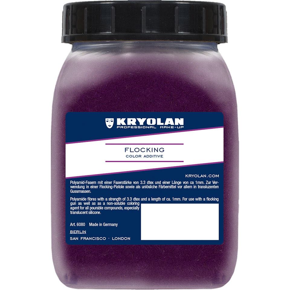Flocking Farbzusatz ist ein sehr feinfasriger Farbzusatz aus Polyamidfasern zur Darstellung eines natürlichen Hautkolorits. Durch die Beimischung geringer Mengen in On-Skin Silicon, Gelatine oder anderer transparenter bzw. halbtransparenter (Dragon Skin, EcoFlex, Platsil Gel) Trägerstoffe kann eine feine Äderung der Haut simuliert werden.