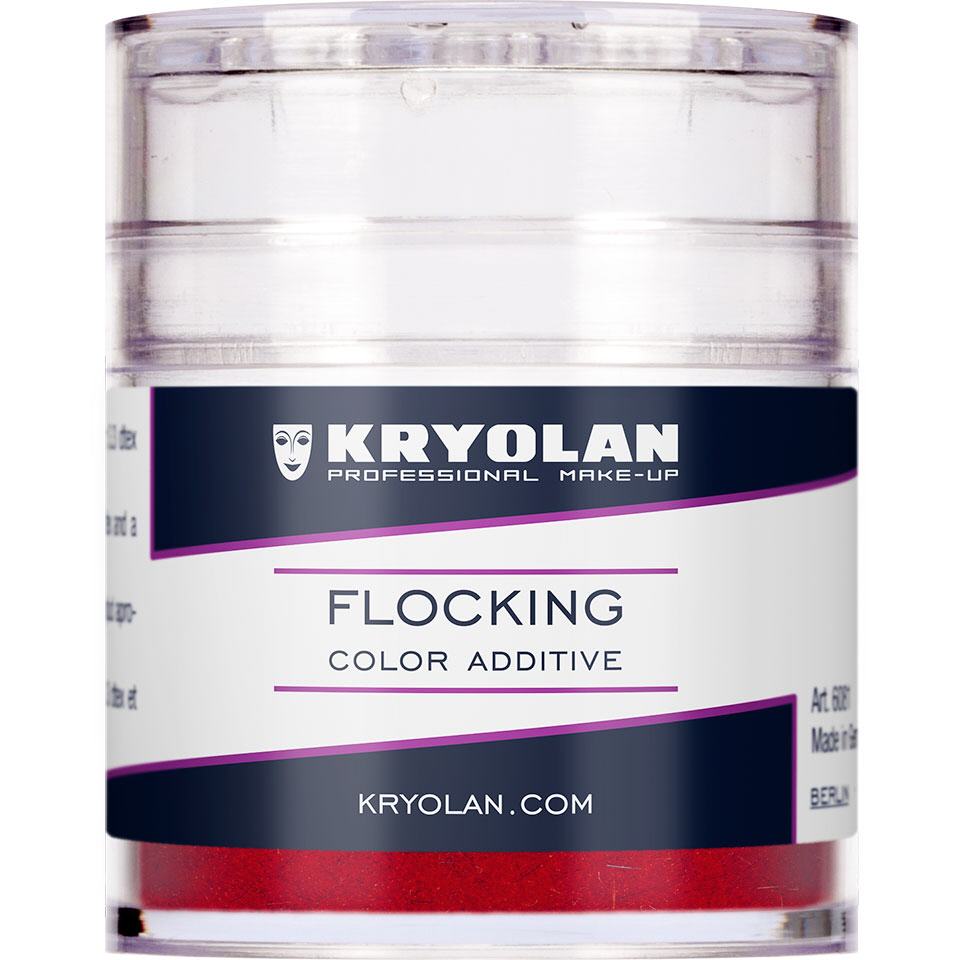 Flocking Farbzusatz ist ein sehr feinfasriger Farbzusatz aus Polyamidfasern zur Darstellung eines natürlichen Hautkolorits. Durch die Beimischung geringer Mengen in On-Skin Silicon, Gelatine oder anderer transparenter bzw. halbtransparenter (Dragon Skin, EcoFlex, Platsil Gel) Trägerstoffe kann eine feine Äderung der Haut simuliert werden.