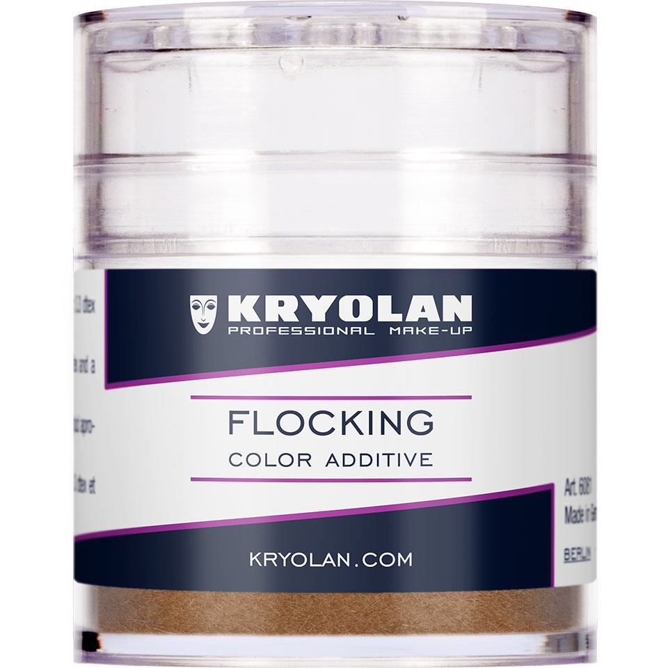 Flocking Farbzusatz ist ein sehr feinfasriger Farbzusatz aus Polyamidfasern zur Darstellung eines natürlichen Hautkolorits. Durch die Beimischung geringer Mengen in On-Skin Silicon, Gelatine oder anderer transparenter bzw. halbtransparenter (Dragon Skin, EcoFlex, Platsil Gel) Trägerstoffe kann eine feine Äderung der Haut simuliert werden.
