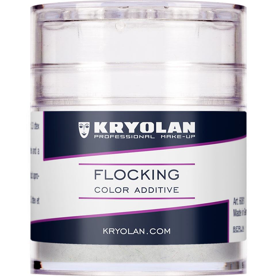Flocking Farbzusatz ist ein sehr feinfasriger Farbzusatz aus Polyamidfasern zur Darstellung eines natürlichen Hautkolorits. Durch die Beimischung geringer Mengen in On-Skin Silicon, Gelatine oder anderer transparenter bzw. halbtransparenter (Dragon Skin, EcoFlex, Platsil Gel) Trägerstoffe kann eine feine Äderung der Haut simuliert werden.
