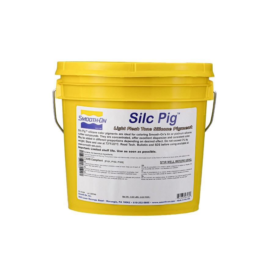Silc Pig™-Silikonfarbpigmente werden zum Einfärben von Smooth-On-Silikonverbindungen wie der Mold Max™-transluzenten "T"-Serie, Dragon Skin™ und Ecoflex™-Gummis verwendet. Silc Pig™-Pigmente werden auch verwendet, um verblüffende Hauteffekte mit Systemen wie Psycho Paint™ und Skin Tite™ zu erzeugen. Die Silc Pig™-Pigmente sind konzentriert, bieten eine hervorragende Dispersion und eine gleichbleibende Farbe. Silc Pig™-Pigmente sind sehr konzentriert, und eine sehr kleine Menge Pigment reicht aus, um eine verhältnismäßig große Menge Silikon zu färben. Je mehr Pigment im Verhältnis zum Volumen des flüssigen Gummis hinzugefügt wird, desto intensiver wird der Farbeffekt.