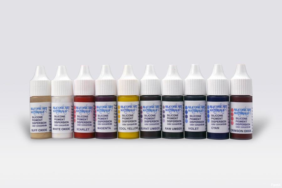 Dies ist ein 10 Farben 7 ml Silikonpigment "Baby Painting" Set. PM mich, wenn Sie interessiert sind. Zwischen SAM Scarlet und SAM Magenta kann eine sehr große Auswahl an Rot- und Rosatönen gemischt werden. SAM Cyan eignet sich hervorragend für bemalte Adern. SAM Burnt Umber und SAM Raw Umber sind zwei der besten Brauntöne, die Sie finden werden. Ideal für tiefe Hauttöne, straffen und schattieren fast jeden Teint und für lackiertes Haar.