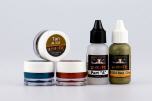 FuseFX Farben werden in handlichen Flaschen von je 15 Gramm "Kits" (15g Farbe und 15g Teil "A") verkauft. Jedes Kit enthält insgesamt 30 Gramm und kann, wenn man es gut anwendet, über 10 Quadratmeter bedecken.