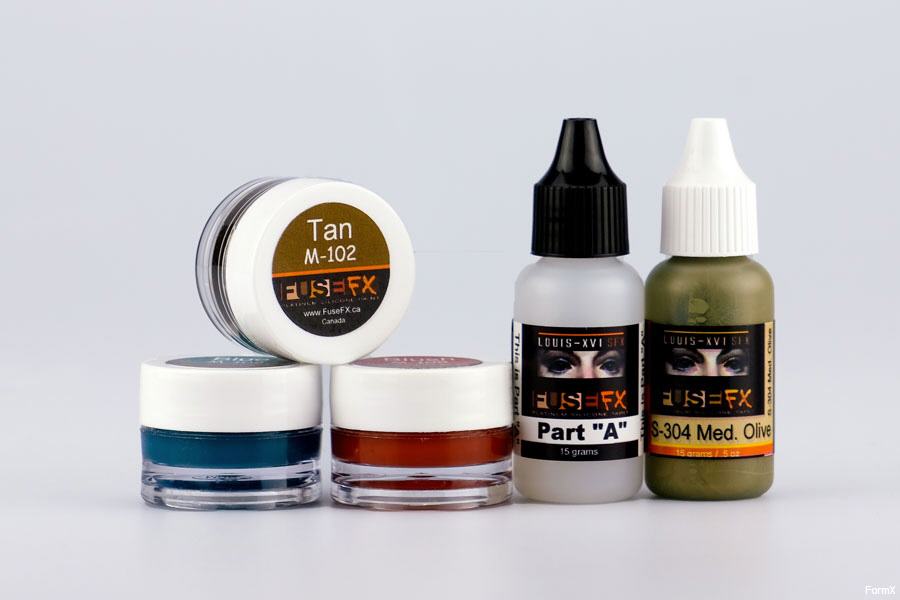 Studie Kit kommt mit: 15 Gramm S-304 Medium Olive Silikon Pigment, 5 Gramm M-102 Tan, 5 Gramm M-105 Blush, 5 Gramm M-108 Blau.